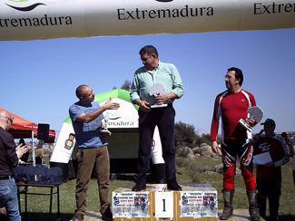 María Parejo en representación del Motoclub Royanejos, Carlos Parejo en representación de la Federación Extremeña y Mariano Fernández como organizador recibieron un trofeo en agradecimiento a su trabajo.
