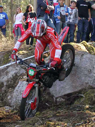 Por detrás la lucha por el cajón estaba abierta entre seis pilotos, de los que destaca Javier Neo con Gas Gas, pero no muy lejos están Mario Vázquez con su Sherco, ganador de la primera prueba, empatado con Carlos Waldomar con Beta que ya sabe lo que es subir al podium, Santiago Herbón con Beta dispuesto a todo, Gerardo Solla con Montesa y Casimiro García con Gas Gas los dos con ganas, uno por ser piloto local y otro ya lleva tiempo buscando un buen resultado.