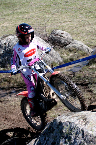 Gran progreso el que viene mostrando Sandra Gómez, con sus entrenos y sus maestros bien puede aspirar a uno de los puestos del podio próximamente en el mundial de féminas. Sandra superó muy bien los pasos del trial, pero cometió algunos fiascos en zonas que antes o después superaba sin problemas, y al final las prisas la añadían también dos puntos de penalización por tiempo, siendo cuarta con 47 puntos.