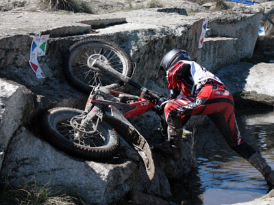 Las zonas eran principalmente de grandes bloques de piedra granítica, con buenas subidas, bajadas, escalones, giros técnicos y hasta algún paso por el agua, siendo todas ellas bastante largas. Pero donde sí que había agua, o más bien barro, era por el recorrido de la interzona. Todos estos elementos hicieron en su conjunto un trial bonito sólo empañado por el asunto de la espera en las colas y el poco tiempo concedido pese a la media hora extra.