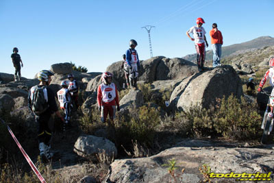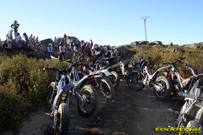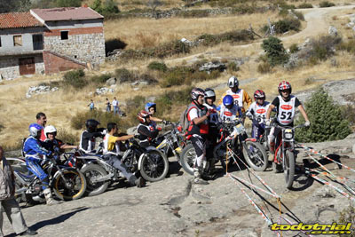 El trial de Valdemanco siempre es garantía de larga interzona, además con la gran cantidad de terreno disponible cada vez el trial es diferente, pues puede discurrir por la parte norte, por el sur, o junto a alguna de las urbanizaciones. Esta vez el recorrido, bastante largo ya que estaba sobre los 10 kilómetros, discurría por la parte suroeste, llegando hasta el repetidor y la urbanización El Enclave. Como siempre constaba de 8 zonas a las que había que dar tres vueltas, esta vez con un tiempo límite de 5 horas, mucho más acertado que las 4 de Cabanillas, ya que aunque sobró para todos, el desarrollo del trial fue mucho más relajado y sin nervios en las colas. Por cierto estas fueron muy pocas y discurrían rápidamente, ya que con tanto recorrido "el pelotón" se estiró mucho más y además no fue necesario que se iniciase el trial en diferentes zonas según la categoría, todos comenzaron en la 1. A las 9:30 de la mañana comenzaba a darse la salida desde el campo de fútbol, según el horario publicado en el tablón de anuncios.