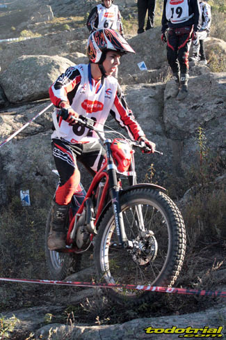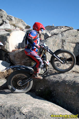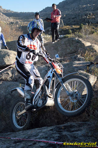 Cinco fueron los pilotos presentes en esta categoría, entre los que de nuevo volvimos a contar con la presencia del catalán del Moto Club La Clau Oriol Noguera, el líder del Campeonato de España Junior, que una vez más demostró su gran nivel a los mandos de su Sherco 125, esta vez llevándose la victoria. Oriol mejoró en cada vuelta para finalizar con sólo 12 puntos, firmando una excelente tercera vuelta con sólo uno. Con 18 puntos era segundo David León, ahora sobre nueva montura, ya que ha cambiado Gas Gas por Sherco. De no ser por dos fiascos en zonas que había pasado a cero en las otras vueltas podía haber optado claramente a la victoria. Su segunda vuelta a un punto deja claro el nivel que está alcanzando. Tercera plaza para el reaparecido Nacho Fernández Sancho, que por unas cuestiones u otras no ha podido seguir el campeonato en su totalidad, una pena pues hubiese puesto mucha emoción en la lucha por el título. En Cabanillas no pudo estar por encontrarse lesionado con un corte en la mano, pero esta vez ya se le habían retirado los puntos de sutura y pudo estar dando guerra Nacho firmó muy buenos parciales, pero falló una vez más en su concentración, cometiendo dos fiascos por saltarse dos flechas, quedando a sólo 2 puntos de David, con un total de 20. Esta vez el piloto local Javi Cordero tuvo las cosas mucho más difíciles para llevarse la victoria, no empezó bien al marcar un fiasco en la zona 1, y las dos últimas también se le atragantaron, ya que no pudo sacarlas a menos de varios. Esto le costó no sólo no poder llevarse la victoria sino quedar fuera del podio por primera vez en la temporada. A sólo dos puntos se situaba Chema Quer, que volvió a mostrar una buena evolución, como demuestran sus cinco puntos de la última vuelta. En el campeonato, la victoria final es para Javi Cordero con un total de 144 puntos, David León es subcampeón con 141 y Chema Quer tercero con 114. El resto de pilotos madrileños no han seguido con asiduidad el campeonato, Yanic Gunter ha abandonado, Sandra Gómez no ha estado presente al tener que atender al Mundial y otros compromisos y Roberto Bautista en este trial prefería volver a su anterior nivel, el azul. En el campeonato de clubes el vencedor es el Valdemanco.