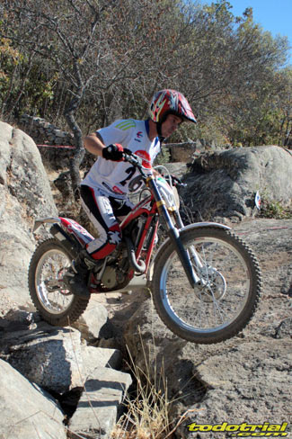 Con sólo un punto más, quedaba fuera del podio José Miguel Herrero, pero obtenía los puntos del tercer puesto en el cómputo final, ya que los pilotos que cescienden de categoría tras la segunda cita del campeonato no puntúan. Excelente trial el de José Luis Ruiz, que como hemos comentado, causó sensación con su Mecatecno terminando la primera vuelta a 3 y la segunda a cero, pero en la tercera fallaba más de la cuenta y con un total de 13 puntos era quinto. Cerca se quedaban Luis Arocas y Adrián Saavedra con 15, y ya algo más atras Felix Iñiguez con 22, Luis Nieto y David Hernández con 23. En la clasificación final Paco Guzmán es el claro vencedor con cinco victorias, segundo puesto para Bertrán Martínez Peñalver y tercero para José Miguel Herrero. Entre los clubes el trofeo es para el Sotobike. Nivel D En el nivel amarillo hubo 29 participantes, menos de lo habitual, de los que ocho se retiraron. Al igual que en azul esta vez el nivel fue algo más elevado y exigente, con zonas bien marcadas y selectivas, aunque se escucharonalgunas quejas sobre un par de pasos, especialmente dos bajadas que podían parecer algo fuertes para la categoría. Jorge Mesas se llevaba su cuarta victoria de la temporada, tercera consecutiva, lo que le servía para llavarse el campeonato de manera destacada. Con un total de 13 puntos dejó al resto de rivales sin opciones, ya que la lucha más apretada estuvo a continuación entre Juan Iruela, Carlos Zorzo y el jóven Alvaro Puebla, que terminaban en este orden con 22 puntos para Iruela y 23 para los otros dos. A destacar que Zorzo participaba con su nueva montura, la clásica Fantic 300 que ya estrenó en Cabanillas, aunque en esta ocasión decidía hacerlo acertadamente por el nivel amarillo en lugar del verde.