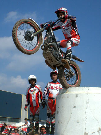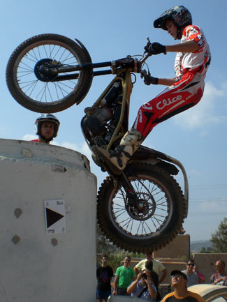 Público que mientras esperaba la llegada de los pilotos, pudieron deleitarse con las impresionantes maniobras que Sergio García, joven campeón de España de biketrial, realizó mientras entrenaba en el área de biketrial de la Vall de Uixó.