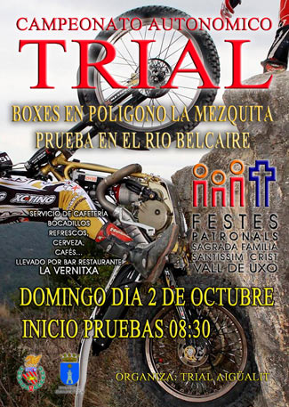 Organizado por Moto Trial Morvedre con la colaboración del Ayuntamiento y la Concejalía de Deportes de Sagunto, con Miguel Angel Antonino al frente, este año se ha optado por el trial tradicional ya que mientras el año 2010 fue un acertado openfree, este año el organizador aprieta fuerte con el territorial y tratará de poner a cada nivel en el sitio que le pertenece.