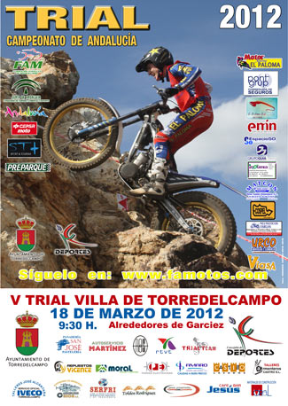 La Peña Moto Camperas Los Salatamontes con el respaldo del Ayuntamiento de Martos, será la encargada de la organizacion de la prueba, que comenzará el domingo a las 9,30 de la mañana. La salida estará situada en las inmediaciones de la Ermita de la Virgen de la Victoria en la Peña de Martos, por cuyo enclave discurrirá el recorrido del trial, que constará de siete zonas a las que los participantes darán tres vueltas. Para esta prueba están convocadas todas las categorias (TR1, Junior; TR2, TR3, Veteranos, Aficionados, Clásicas, Expertos, Cadetes e Infantiles) por lo que se espera una amplia participacion de pilotos llegados desde todas las provincias andaluzas. Las inscripciones deberán de realizarse antes del jueves día 8, en la web de la FAM www.famotos.com. Con la disputa de esta prueba, el trial regresa a Martos tras un largo parentesis desde allá por los años 90, cuando la localidad marteña era sede de pruebas de la Copa Diputacion de Trial de Jaen. Para ampliar información o aclarar alguna duda podeis contactar con Miguel en el teléfono 656609085. Información de la localidad en: www.martos.es.