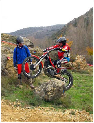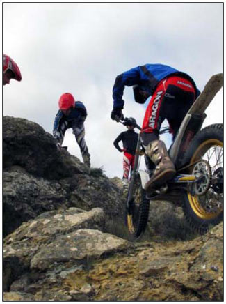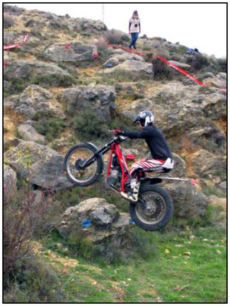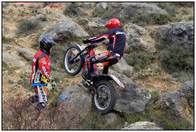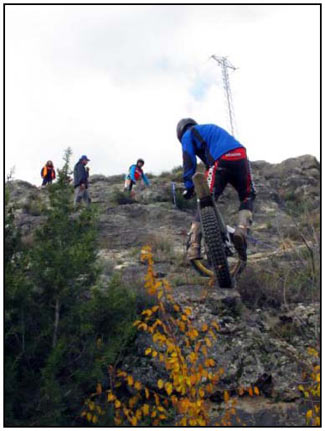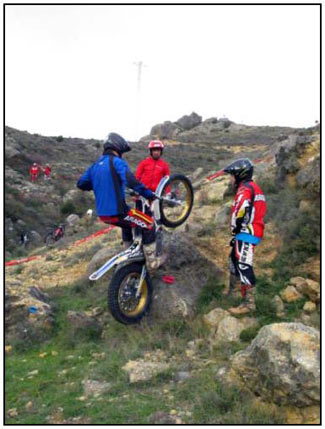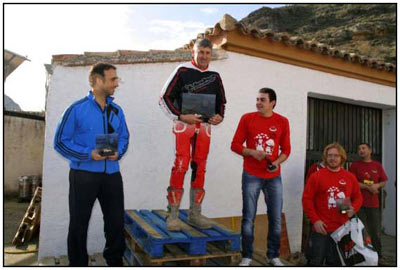 El pasado 25 de Noviembre se celebró la última prueba del campeonato de Trial de Aragón 2012. Un trial en el Paraje del Romeral del municipio de Calcena, provincia de Zaragoza. El frio y la lluvia nos dieron tregua y pudimos disfrutar de pleno de la 10ª edición de esta prueba. El trial constó de 7 zonas y 3 vueltas, donde el nivel fue bastante bueno, aunque echamos a faltar a los líderes de la máxima categoría TR-1 Sergio Puyo y David Millán. El trial fue organizado por el Moto Club Trial Muel, que junto con la colaboración de la Asociación Cultural de la Villa Amigos de Calcena y su Alcalde Mariano Miguel, hicieron un excelente trabajo como ya nos tienen acostumbrados en cada edición. Las zonas marcadas de manos de Jorge Chico y Nacho Martín (Moto Club Trial Muel) eran muy técnicas con giros estudiados para el disfrute de trialeros y asistentes. Las rocas agarraban bien, aunque las piedras sueltas añadían una dificultad a dichas zonas.