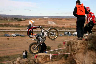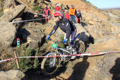 El pasado Domingo 11 se celebró en la localidad Zaragozana de Caspe una prueba puntuable para el campeonato Argones de trial. La inscripción fue densa y todos los participantes que aún luchan por el campeonato se dieron cita en tierras caspolinas. Cuarenta pilotos llegados de diferentes lugares de Aragón y Cataluña participaron en el Trial de Caspe, trial que se recupera gracias a la afición de varios pilotos locales. Se pudo ver un gran nivel ya que en el evento participaron pilotos punteros a nivel nacional como la joven promesa Arnau Farré, el exmundialista Marcel Justribó y por supuesto David Millán. Un Trial compuesto por 7 zonas naturales en terreno virgen, que los pilotos tuvieron que realizar tres veces con un tiempo máximo de 4 horas y 30 minutos. Al principio de la mañana la humedad hizo que las piedras estuvieran resbaladizas y se produjeran más penalizaciones.