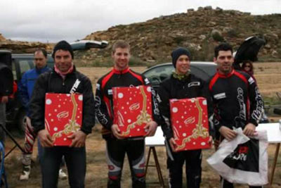 Además aprovecho las distintas variantes para superar las flechas rojas eligiendo siempre las trazadas más espectaculares y complicadas arrancando los aplausos del público asistente. Un gran trial realizó el líder del campeonato y oficial de JTG David Millán el piloto de Motorland se le vio muy suelo y disfrutando las zonas marcando una tarjeta final de 16 puntos. Para completar el pódium, todo un campeón de España en su categoría, Arnau Farré, del MC Segre. El joven Leridano hizo un trial espectacular, tras superar un fiasco en la primera zona no cedió en su empeño y fue de menos a más finalizando con 27 penalizaciones. En cuarta posición quedó el piloto del Matarraña Segio Puyo que también fue de menos a más realizando una última vuelta espectacular. David