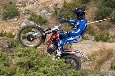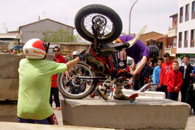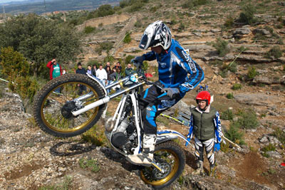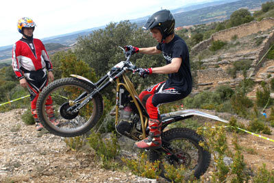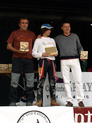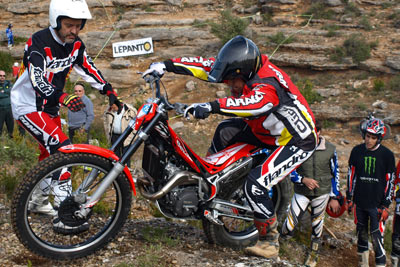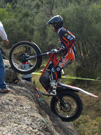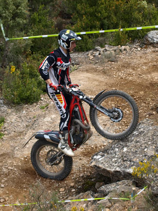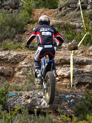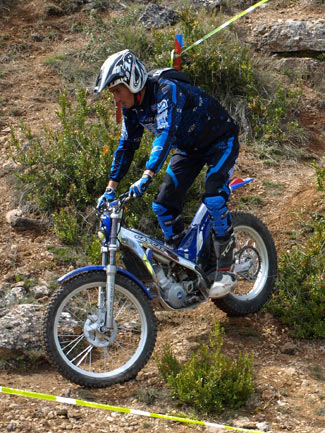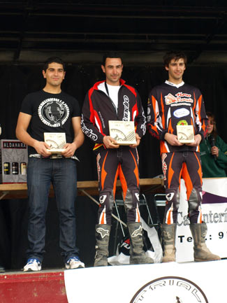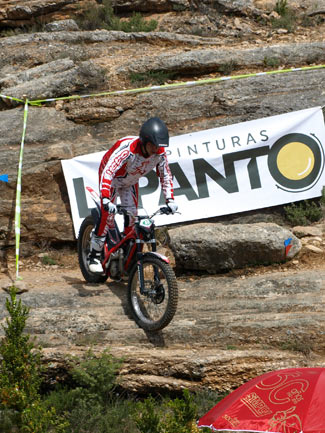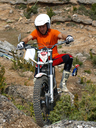 TR2, profeta en su tierra José María Naval dejó de lado la presión de correr en casa y se centró en completar el trial. Muy buen resultado que confirma la tónica de esta temporada constantemente en el podio. El factor campo fue algo que también supo aprovechar el otro piloto local, Iván Cereza. Pese a comenzar bastante mal se supo recomponer y a punto estuvo de dar la sorpresa y asaltar el segundo cajón del podio. Naval marcó el handicap de las zonas y mediante unos y ceros completó una pasada en 8 y la segunda mejorando su puntuacion en la mitad. David Castella le seguía de cerca, pero no logró una notable mejoría y tuvo que conformarse con ser segundo. Iván Cereza acusó en exceso un cinco en la primera vuelta, que para más desgracia fue al saltarse una flecha. David Renales fue cuarto, y aunque mejoró sus parciales, la primera vuelta pesó mucho para permitirle acercarse al podio. Cristian Poblador fue la noticia por llegar al trial sin moto, bueno, con moto, pero después de arrastrarla con el carro sobre el asfalto poco uso pudo hacer de ella. Aun así, con una sonrisa y muchas ganas de andar completó el recorrido con una moto compartida, y aunque le costó adaptarse a la nueva montura, la segunda vuelta con tan solo 10 penalizaciones le permitió remontar muchos puestos.