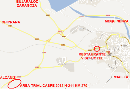 La prueba constará de 8 zonas naturales a lo largo de un recorrido de 2,7 km que discurrirá íntegramente por sendas. A partir de las 9 horas se servirá un almuerzo. El comienzo de la prueba está programado para las 10 horas. El recorrido constará de 8 zonas y se realizarán 3 pasadas para completar un total de 24 zonas. Las categorías TR1 y TR2 comenzarán en la zona 5, mientras que las categorías TR3 y TR4 lo harán en la zona 1. Las inscripciones se pueden realizar en la página web de la Federación Aragonesa de Moticiclismo www.faram.es. Recordamos que pueden participar con licencia autonómica comunidades limítrofes como Euskadi, Navarra, La Rioja, Cantabria, Asturias y Castilla León. Las zonas de acceso para el público podrán ser desde el mismo parking o bien tomando la salida junto a la zona 1 (solo se puede tomar en dirección a Caspe) y dirigiéndose por el camino a la zona que aparece en el mapa como Corral.
