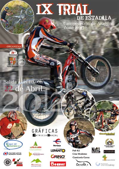 El Ayto. de Estadilla, la sociedad cultural l´Aurora y el moto club Benasque son los organizadores de esta prueba y han diseñado un circuito para esta edición que constará de 10 zonas, a las que se completarán dos vueltas. El tiempo máximo será de 3 horas y 20 minutos más 20 minutos de penalización. La ubicación de las zonas se encuentra próxima al pueblo, facilitando así el acceso al público. Además una zona será de tipo indoor y estará ubicada en el centro del pueblo. Las 9 zonas restantes se encuentran muy próximas entre si. Las pre-inscripciones para la carrera podrán formalizarse a través de la FARAM, bien por la vía ordinaria o a través del correo electrónico faram@faram.es, o en el telefono 976730970. Tambien a través del telefono de la organización 607697780 (Bruno Pallares) o en el correo bruno@trialestadilla.es. La fecha limite para las pre-inscripciones es el martes 17 de abril a las 23:59. El importe de la carrera es de 30 €. A partir de esa fecha existe un recargo con limite hasta el jueves 19, y las inscripciones posteriores se cobrarán con recargo en la mesa de verificaciones hasta la mañana de la carrera. Como ya es tradicional en esta carrera, a lo largo de la mañana se ofrecerán degustaciones de Longaniza de Graus y vinos de las bodegas locales. Así pues será una oportunidad perfecta para acercarse a un entorno natural excelente y disfrutar de un deporte al aire libre y de los buenos alimentos que estas tierras ofrecen. La proximidad de las zonas entre sí garantizan el poder disfrutar de un buen día trialero para todos los aficionados. Los pilotos que deseen desplazarse a Estadilla en los días previos al trial podrán hacerlo ya que la organización dispondrá un parque cerrado para las motocicletas de los participantes. Alojamientos