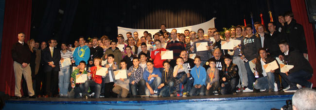 Posteriormente, ha llegado uno de los momentos más esperados como ha sido los Reconocimientos Motociclistas. Por un lado, a MotorLand cuyo director, Tomé Alfonso, tras recoger el galardón ha invitado a la Federación a seguir trabajando en la misma línea para que los pilotos aragoneses tengan más oportunidades dentro del marco nacional: Son los que dan contenido a MotorLand y al resto de circuitos de Aragón que también están realizando un importante trabajo. Además, les ha felicitado por el trabajo que hace FARAM con la cantera. Posteriormente, se ha hecho entrega de otro Reconocimiento a su Labor Motociclista al programa de Aragón Televisión, Motormanía. El director del mismo, Óscar Marco, ha sido el encargado de recoger el premio y ha tenido palabras especiales a sus compañeros de equipo ya que, sin ellos, no sería posible dar a conocer lo que hace la Federación. Como último momento emotivo, ha sido la entrega en manos del presidente el trofeo al Mérito Motociclista que, este año, se le ha otorgado al piloto Luis Carlos Maurel. En su discurso, Maurel ha insistido que ahora se debe aprovechar las instalaciones con las que cuenta Aragón, algo que yo no tuve y resultaba más complicado. Hay que seguir trabajando para ver más pilotos en los campeonatos internacionales. A este respecto, ha hecho un guiño al piloto Mariñelarena. Por último, el director general de Deportes, Félix Brocate, se ha comprometido en ayudar a la Federación en la promoción del Motociclismo entre los más pequeños. En cuanto al Calendario de Trial 2012, ya ha sido definido, contando este año con 10 pruebas, 3 más que el año pasado, tal como podéis ver en el cuadro adjunto y en la sección Calendario de Todotrial.com.