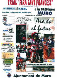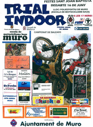 El próximo sábado 16 de junio se inicia el Campeonato de Baleares de Trial Indoor con el Trial Indoor de Muro "Festes de Sant Joan Baptista". El lugar será la sede de la Escuela de Motociclismo Base en el Polideportivo de muro, iniciándose el trial a las 15:00 horas.