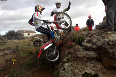 En verdes las dos primeras posiciones del pódium fueron para los pilotos extremeños Alberto Oliveira y César Velázquez , mientras el tercer puesto fue para el piloto local Prometo III Aguirrebeña, quien mantuvo un precioso y reñido duelo con su padre. Otros dos pilotos extremeños coparon el primer y segundo puesto del pódium restante: fueron el incombustible y entrañable Andrés Gil, y Daniel Illescas, la tercera posición fue para José Luis Muñoz de Ciudad Real. Mencionar por supuesto a las dos féminas que nos vienen acompañando en nuestros triales y que darán mucho que hablar en un futuro no muy lejano: Cristina Gil y Eva Muñoz. En total 37 pilotos venidos de Toledo, Madrid, Extremadura y Ciudad Real quedaron entusiasmados con el Trial y, cómo no, fascinados con la organización que una vez más puso toda su ilusión en que todos los asistentes disfrutáramos de éste fin de semana.