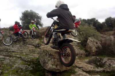 Al finalizar el trial, Marcos y Nachete nos deleitaron con una impresionante exhibición donde todos pudimos ver el exquisito nivel de pilotaje de dos futuras estrellas del trial del panorama nacional e internacional, que a manos de sus Sherco y Gas Gas botaron y volaron sobre las rocas como si de bicis se trataran, dejando impresionados al público y al resto de pilotos. No podemos dejar de mencionar como siempre a las estupendas cocineras que en esta ocasión nos prepararon una extraordinaria caldereta de cordero y una entrañable sobremesa cargada de polvorones, mantecados y golosinas de manos de nuestro piloto Andrés. Gracias una