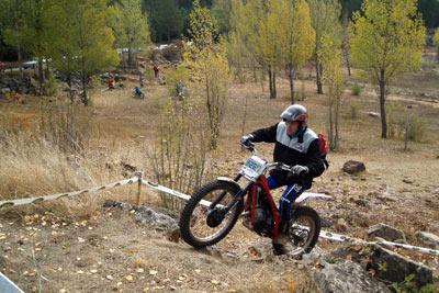 Nada menos que 28 pilotos convirtieron a esta categoría en la más concurrida. Muy apretadas las primeras posiciones. Se impuso el piloto del Club Deportivo Motonava Rubén Fernández González que, con su clásica Honda TLR, se dejó tan sólo 6 pies (0, 5 y 1). Espectacular su primera pasada con el único cero de la carrera. (Informaros, para los que no lo sepáis, que Rubén ha sido subcampeón de España de motos clásicas en la máxima categoría). En segundo lugar de esta carrera y con un pilotaje muy fino y seguro quedó el cántabro del MC Reinosa Alberto Saiz Coz con 7 puntos (2, 2 y 3). El tercer puesto fue para el jovencísimo asturiano Pablo Suárez Jambrina con 8 puntos y una espléndida progresión (4, 3 y 1). Impresionante ver como este rapaz sorteaba los obstáculos verdes con una soltura propia de un futuro campeón. El resto de participantes nos fuimos dejando más y más pies hasta los 69 del último clasificado en esta categoría. Las zonas más difíciles de pasar a cero fueron la 4 y la 5.
