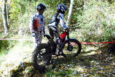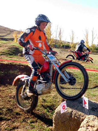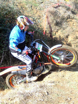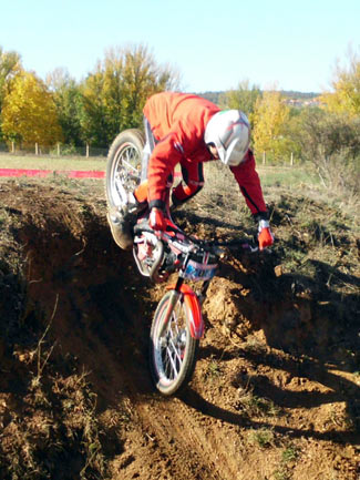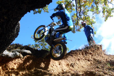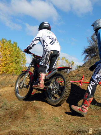 Una mañana preciosa se levantó con nosotros el domingo; un cielo azul con un sol radiante hizo que se evaporase la humedad que la helada había dejado. Nadie lo hubiese predicho después de ver como llovió los días anteriores. Las zonas, que básicamente fueron de tierra y suelo boscoso con abundantes hojas y algo de hierba, estaban en perfectas condiciones para la práctica del trial. Las zonas no revistieron peligrosidad alguna. Fueron 20 pilotos los que tomaron la salida que se dio a las 10,15 horas siendo el orden de salida el habitual: TR4, TR3, TR2, y TR1. La cadencia de salida fue la de 2 pilotos cada minuto y medio. TR1 (puertas rojas) En esta ocasión 3 pilotos tomaron la salida para afrontar los pasos de mayor dificultad.