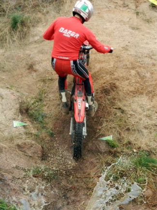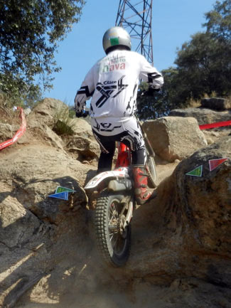 TR1 Tres pilotos disputaron la carrera en la categoría de máximo nivel. Marcos Méndez González (equipo Sherco-Alfa), primer clasificado, pasó con facilidad las zonas dejándose 5 pies en un fiasco en la zona 2 de la primera vuelta y pasando el resto de las zonas todas a cero. El segundo lugar del podio lo ocupó Diego Garrido García que se dejó 11 puntos (5, 5 y 1). El tercer lugar del cajón fue para Luis Adrián Fernández Gallardo (equipo PMC) con 23 puntos (4, 11 y 8). En la primera vuelta era Luis Adrián quién iba ganando con 4 puntos y Diego y Marcos empataban a 5 pies. Al finalizar la segunda vuelta ya iba mandando Marcos, ya que Diego cometía un 5 en la zona 1, que era muy fácil, y aunque Diego estuvo muy fino el resto de la carrera Marcos no falló en ninguna zona ganando claramente. Después de esta carrera y quedando sólo una para finalizar el campeonato el primer puesto de la general se la disputan Marcos y Diego.