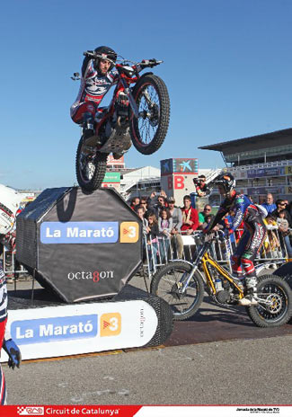 Otra de las actividades celebradas con motivo de La Marató de TV3 en las instalaciones ha sido el 1r Trial Solidario, organizado por MOTOCAT con la colaboración de la Federación Catalana de Motociclismo y el Circuit de Catalunya. Por primera vez, las zonas de público del Circuit han sido escenario de una prueba de trial, con seis zonas a tres niveles. Un total de 605 motos inscritas han conseguido que el 1r Trial Solidario haya registrado el récord de participantes nunca alcanzado en una prueba de trial en todo el mundo. Al mediodía también se ha realizado una exhibición en zonas de trial indoor en el paddock, a cargo de pilotos como Adam Raga, Jeroni Fajardo, Takahisa Fujinami, Albert Cabestany, Pol Tarrés, Dani Oliveras, Emma Bristow, Francesc Moret y Jorge Casales, entre otros. Toni Bou y Laia Sanz también han colaborado en el 1r Trial Solidario. Además de todas las actividades celebradas hoy en el Circuit de Catalunya, los asistentes han tenido la oportunidad de realizar una visita por las instalaciones, pasando por dirección de carrera, la sala de briefing, el podio, la sala de prensa, etc.