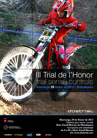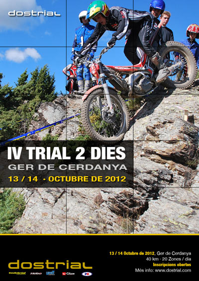 Finalmente, y después de algunos cambios de fecha, el trial se realizará definitivamente el próximo día 29 de Enero en Matadepera (Barcelona). Los pilotos, salen y hacen el recorrido con parejas y llevan las tarjetas intercambiadas, de forma que cada piloto deja de traer su propia tarjeta como se hace siempre para traer la de su pareja. Los controles, con este nuevo formato desaparecen y el sistema de marcaje consiste en situar un pica al final de cada zona para que el piloto marque la tarjeta de su respectiva pareja al finalizar la zona. El recorrido constará de unos 10 kilómetros, con 12 zonas a 2 vueltas. Está abierto a todas las categorías, clásicas incluídas, y habrá 3 niveles de dificultad: Rojo (dificultad alta), Azul (dificultad media) y Amarillo (dificultad baja). Las inscripciones y salida serán en el Restaurante Cavall Bernat, al igual que el año pasado. Las inscripciones se pueden realizar ya en el boletín de inscripción de la web de la organización, Dostrial.com. El precio es de 35 Euros para inscripciones realizadas hasta el 27 de enero. Para inscripciones realizadas el mismo día del trial es de 50 Euros. El pago de las inscripciones se realizará el mismo día del trial. El precio incluye almuerzo. Más información en www.dostrial.com. |
