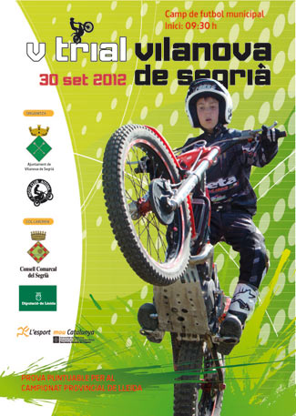 El próximo domingo día 30 de septiembre se celebrará en Vilanova de Segrià la cuarta prueba del campeonato Open de Lleida de Trial 2012. A partir de las 8:30 horas desayuno para los pilotos y a las 9:30 inicio del trial. Os esperamos a todos para disfrutar de un trial que destacará por su gran organización.