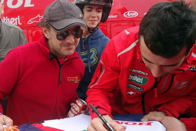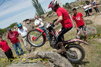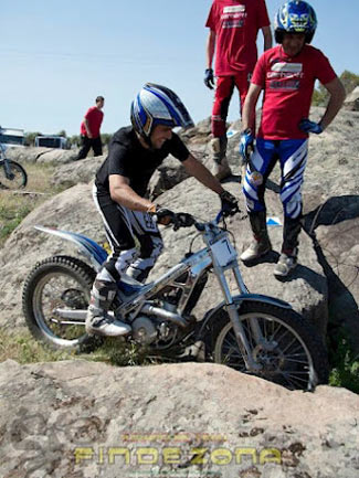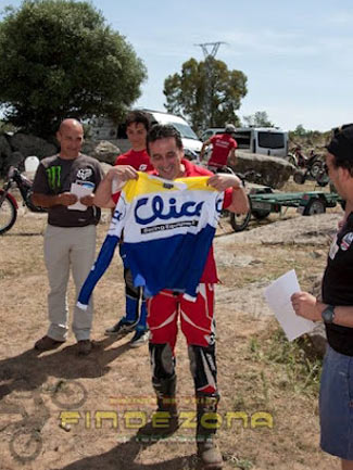 Celebramos también el aniversario de D. Justo Álvarez Prieto, pues cumplía 32 años (creemos), y lógicamente se le dio su merecido homenaje dada su ejemplar colaboración y trabajo para que Findezona se haya convertido en un proyecto que en un primer momento ninguno nos imaginábamos. Al final de la jornada empezamos a notar algo de calor, pero llevadero. Destacar que para tal evento Lolo Padilla, hizo la reentré, después de su lesión de clavícula, y para tal fin como no podía ser de otra forma, se enfundó el mono Repsol - Montesa, que fue propiedad del mismísimo campeón del mundo D. Toni Bou, y que fue firmado amablemente por él mismo como demuestran las fotos que se hicieron para la posteridad. Para esta ocasión se inauguró de forma no oficial el nuevo "photocall" para la entrega de obsequios y distinciones, aun falta prepararlo y adecentarlo bien para próximas ediciones, la llegada del citado "photocall" fue espectacular...