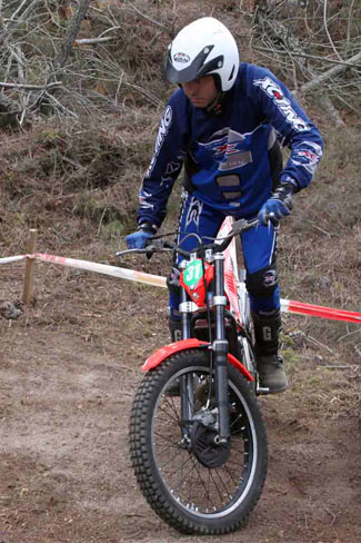 Aunque parezca algo desangelada, la categoría promete. Va a ser un duelo de un gran campeón con 34 años y una habitación en la que ya no caben más trofeos, títulos incluso de Campeón de España, y que muestra un excelente estado de forma y un sensacional dominio de su montura favorita, esta vez, una flamante Beta… José Manuel Suárez tendrá que vérselas con el actual campeón de España de TR2,Jorge Casales, que además acaba de llegar de participar en el CET absoluto junto a Raga, Bou, Cabestany, Fajardo, etc., con su Gas Gas sorprendiendo con su buen resultado. También debe contar con las ganas de Cristian Alonso, un soberbio piloto que quiere y puede estar delante de ellos, y de hecho lo hizo. Durante una buena parte de la primera vuelta dominó la prueba con su Gas Gas controlando un punto de diferencia sobre Jorge y dos sobre José Manuel. Pero en la fatídica zona diez una de sus puertas hizo que Cristian cometiese un error máximo, paso que sus rivales superaron limpiamente. Y queréis emoción… pues la hubo. Jorge empata con José en la zona dos dejando un punto. Con ocho zonas por delante cualquier error decantaría la carrera a favor de uno u otro. El numeroso público presente y los pilotos que ya habían concluido su carrera siguieron la de los tres ases del gallego hasta el final… súper interesante. José deja un punto en la zona seis y otro en la diez, dos puntos de diferencia que obligaron a Jorge a sacar su mejor arma, buen trial, y a aplicarse al máximo en una carrera de poder a poder. Cristian mientras se dedicó a lo suyo, rebajar la diferencia entre los dos, terminó la segunda vuelta con dos puntos y pasó la zona diez a cero, como no podía ser de otra forma, por lo que, cuidadín, que Cristian estará dando guerra en cada trial. Os lo decimos sinceramente. Un trial bonito y cómodo de ver, podías ver todas las zonas sin problema, seguir el trial fácilmente, y que resultó muy interesante. Una mañana bien empleada y disfrutando de trial en acción, en vivo y en directo, a buen nivel, y totalmente gratis…
