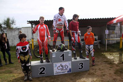 El nivel sube ya algo más en juveniles con la presencia compartida de pilotos expertos con otros que buscan su lugar en este competido mundo. En la prueba de Verín la categoría recibe una agradable sorpresa que no es otra que la llegada de un nuevo piloto que prueba el trial compartido con el mx. Se trata de Breixo Atrio Rodríguez con Gas Gas que recibe la mejor de las recompensas en su llegada y no es otra que un podium en la categoría junto a Martín Riobó Hermelo con Gas Gas que consigue su cuarta victoria y a Yago Armesto López también con Gas Gas que acaba segundo y consolida su posición ante la ausencia de Julio Díaz Miranda y Alén Damil García. Entre estos dos pilotos está la lucha por la tercera plaza final del campeonato que se tendría que resolver en la carrera de Teo. El líder Martín repite victoria con dos vueltas a cero, mientras Yago con su 80 demostró que estuvo entrenando para mejorar su pilotaje realizando un buen trial acabando por delante de Alén y su Sherco por solo un punto. Este podium de Alén no le sirve para lograr la tercera plaza final que se va al manillar de la Gas Gas pilotada por Julio Díaz Miranda, un joven que se estrenó este año en la categoría y que recibe un merecido premio. Alén está contento de todas formas ya que consiguió un magnífico segundo puesto con su 80 cc en cadete absoluto.