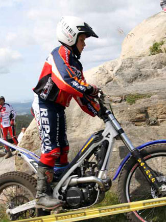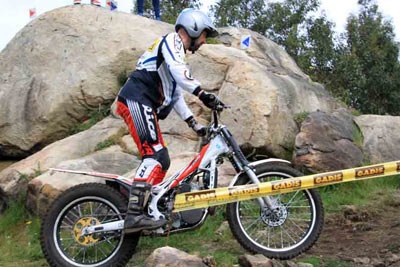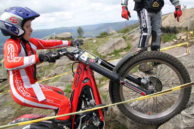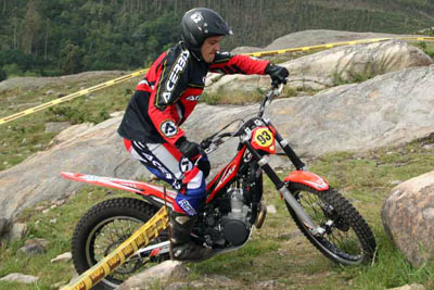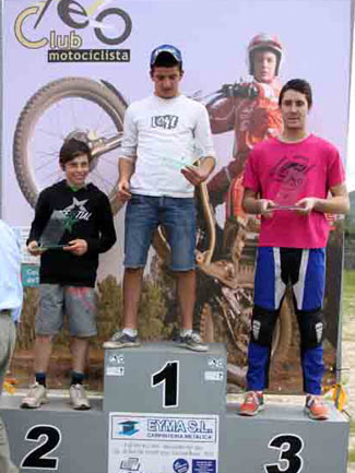 Serían como siempre los primeros en enfrentarse a unas zonas mezcla de tierra con pendiente y grandes piedras y losas graníticas que se complicaban con la presencia de numerosas piedras sueltas, estas que te hacen poner un pié inesperado por la respuesta de la moto al pasar sobre ellas. Un puntillo de dificultad que pronto se notó en las tarjetas de todas las categorías. De nuevo sería Héctor Castelo con su Gas Gas el que marcó la diferencia ya en la primera vuelta. En segunda posición y demostrando su ansia de victoria José L López trabajó duro con Gas Gas y no acabó nada lejos de Héctor, y por delante de Ignacio González con Beta. Por detrás ya alejados de los primeros puestos dos pilotos compitieron entre ellos por la mejor posición con máxima igualdad. Por un lado Alberto Costas y por otro Álvaro Pérez los dos con Beta. En la segunda vuelta habría cambios. Héctor suma más puntos permitiendo que sus rivales se acerquen de cara a la lucha por la victoria. En cambio José no tiene mucha suerte y también se carga dejando que Ignacio le supere por solo un punto.