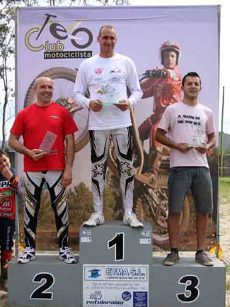 En la definitiva las posiciones se resuelven. Santiago presenta la mejor tarjeta de la categoría y consigue la segunda victoria de la temporada. Jorge también mejora y se adjudica la segunda posición. Y la tercera plaza será para un concentrado José, que de no ser por la selectiva zona cuatro también presentaría una sensacional tarjeta final. Cuarto Alberto con muchos problemas, o sea, puntos, pero suficientes para acabar por delante de Sergio. Con este resultado la general y la lucha por conquistar el liderazgo de la categoría se aprietan. De nuevo será emocionante la parte final del campeonato, sin duda. Por la sexta y séptima posición la lucha estaría entre dos pilotos Gas Gas de la que salió beneficiado Joaquín Diéguez que superó a Javier Piñeiro. Solo encontramos en la octava posición al joven Carlos Miguéns con Gas Gas que hoy no tendría su día. La novena posición será para Ángel Leirós Jarabo, el piloto Beta sufría problemas con su hombro que no le dejaban hacer los movimientos necesarios para superar las zonas con éxito y prefirió “picar” la última vuelta perdiendo sus opciones tanto de podium como posiciones en le clasificación general. Décimo Víctor Pérez, piloto Sherco, que de nuevo estuvo con nosotros. Comentaros la retirada de Manuel Soto con su Gas Gas.