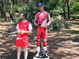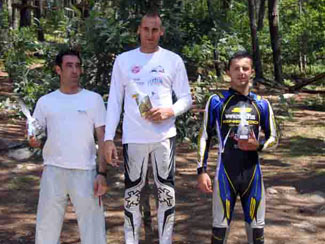 Hoy el ganador fue nada más y nada menos CRISTIAN ALONSO. Nos dio a todos una agradable sorpresa al aparecer junto a sus familiares en este trial. Nos enseñó las secuelas de su lesión con una entereza elogiable, una lección de superación que no hizo más que empezar para él y para su futuro. Recibió el cariño y el apoyo de todos los presentes que, sin dudarlo, se acercaron a hablar con él y a darle sus ánimos, cada uno a su manera. Como homenaje al final de la carrera la organización y el Concello de Marín junto con el parque aventuramarín.com le entregaron un trofeo que sirvió de recuerdo y de señal de apoyo de todos los implicados en este campeonato. Además tuvimos la suerte de ver en acción a los dos pilotos compañeros de Cristian, Jorge Casales con Gas Gas y José Manuel Suárez con Beta. Jorge quiso aprovechar para entrenar de cara a su próxima salida en el Mundial Júnior, donde acaba de cosechar dos éxitos para su palmarés y para el trial Gallego con dos terceros en Córdoba y dos segundos en Andorra. Jorge es joven, pero todos sabemos las ganas de victoria que tiene. Quién sabe, tal vez venga de Italia con su ansiado primer puesto en la categoría. Por si acaso, se llevó los ánimos de todos los trialeros del gallego y un magnífico aplauso de la afición en las zonas.
