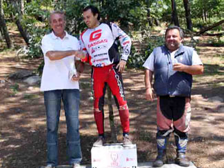 Para que os hagáis una idea de la igualdad y emoción de la carrera debéis saber que tanto Martín como Alén Damil (Sherco) y Yago Armesto (Gas Gas) acabaron la primera vuelta empatados a cinco puntos. El cuarto fue Julio Díaz que sigue aprendiendo sobre su Gas Gas en este su primer año de competición y que, todo hay que decirlo, es valiente y cada vez lo hace mejor. Con el triple empate la segunda vuelta estaría muy cargada de nervios. Con las zonas asequibles todos se dieron cuenta de que cualquier error se pagaría caro. Martín puso la directa y se centró consiguiendo una tarjeta de solo un punto que le alejó de sus rivales. Por la segunda posición la lucha entre Alén y Yago sería lo máximo. Alén dominaba con claridad tras un cinco cometido por Yago en la zona cinco. Alén comete dos apoyos en la siguiente por lo que dominaba con tres puntos de ventaja sobre Yago: Pero en la última zona su moto se apagó misteriosamente y no fue capaz de arrancarla sin apoyar, así que las cosas cambiaron para Yago. El de Gas Gas pasó la zona con solo dos apoyos por lo que consigue así la segunda plaza del podium por la mínima. Mala suerte esta vez para Alén, que ya nos dijo que le va a subir un punto el ralentí a la moto para evitar que le vuelta a suceder algo así. Nadie está libre, le puede suceder a cualquiera.