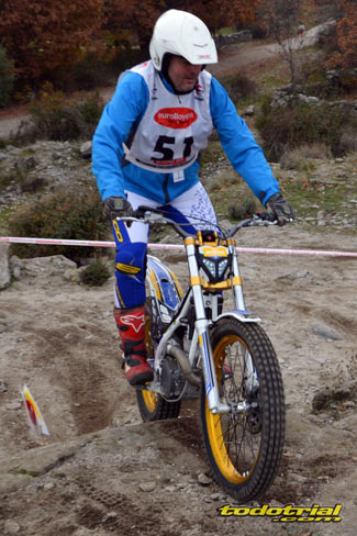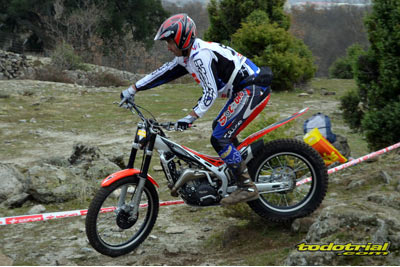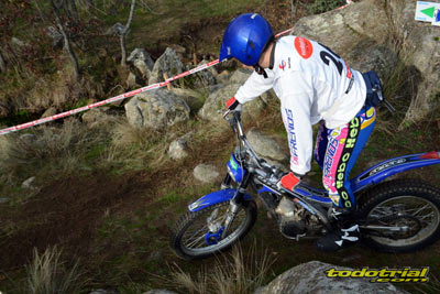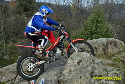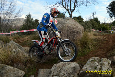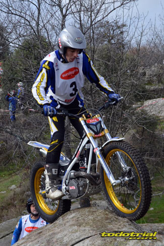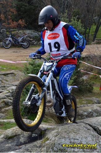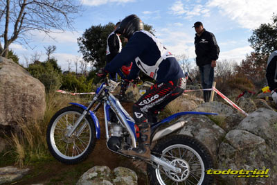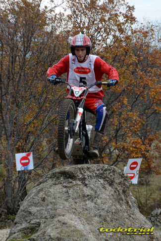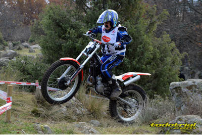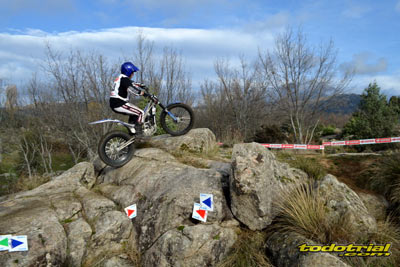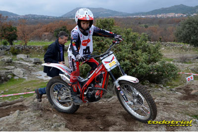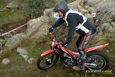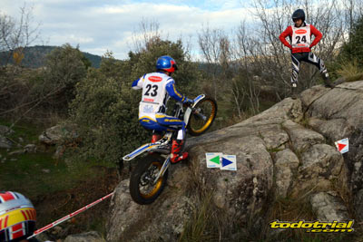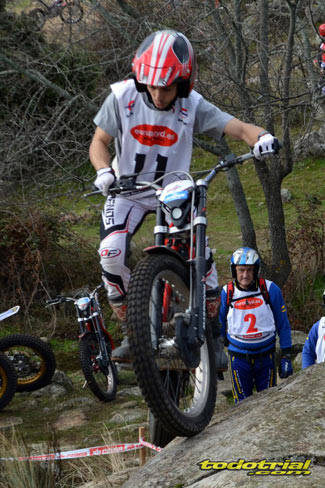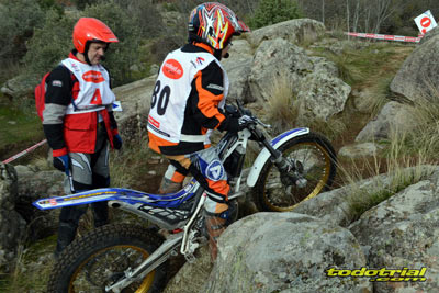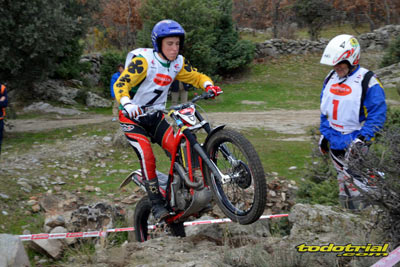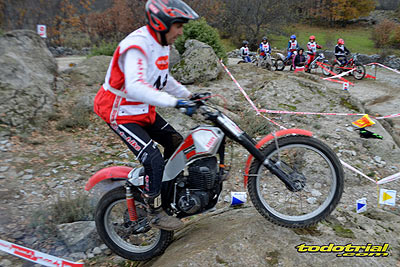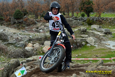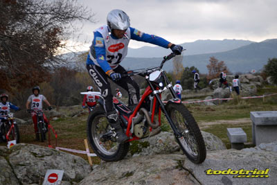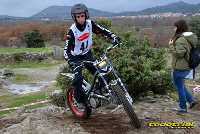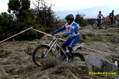 Las piedras estaban muy resbaladizas a primera hora de la mañana pero poco a poco se fueron secando. El día, aunque gris, no amenazaba lluvia, y al final se quedó una mañana expléndida con temperaturas medias,ideales para disfrutar del trial. Ante esto también más público del habitual quiso acercarse a ver el espectáculo. De regalo tuvimos algunos rayos de sol ya avanzada la mañana. Campeones decididos Pasando a dar un leve repaso por lo que fue el aspecto deportivo, comentar que en esta ocasión la prueba no era puntuable para la categoría Infantil C, por lo que los participantes esta vez se redujeron a dos, Javier García y Alejandro Esteban, que finalizaron en ese orden. El resultado del campeonato es el que ya os contamos en el reportaje de Navalafuente. En Aficionados, también escasa participación ya que sólo se presentó Fernando Javier Gallardo.