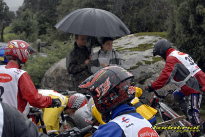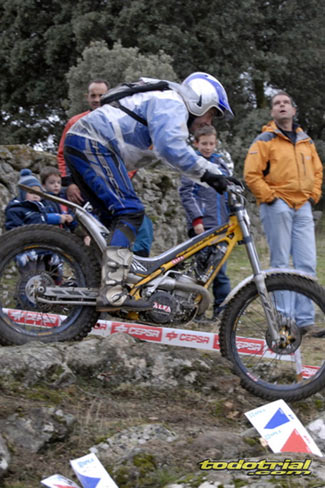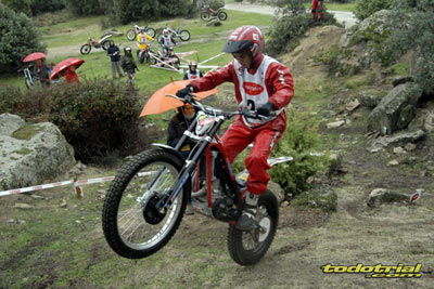 Juan González ha sido uno de los mejores trialeros de Madrid, debutó en 1991 y en los 90 fue uno de los pilotos top en el Campeonato de España Junior y Senior C. Siempre ha mostrado unas magníficas dotes innatas para la práctica del trial, una facilidad natural que le hizo recibir ofertas por parte de algunas marcas para ser piloto profesional, pero que quiso descartar para dedicarse de lleno a sus estudios y posterior profesión como protésico dental. Seguro que hubiese llegado lejos, pues estaba al nivel de sus rivales, nombres como David Cobos o Gabriel Reyes. En su retorno demostró que el trial no se olvida, pero eso lo veremos después. A destacar también la presencia de las cámaras de Telemadrid y su programa En Acción, una vez más fieles al deporte del trial, lo que es de agradecer. Al finalizar el trial la lluvia apareció de nuevo haciendo que los pilotos levantasen el vuelo rápidamente de vuelta a sus hogares, en algunos casos sin acudir a la entrega de trofeos que tendría lugar en un bar de la localidad. Veamos lo que sucedió en las 6 categorías convocadas.