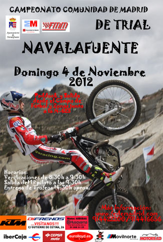 El próximo 4 de noviembre la localidad madrileña de Navalafuente acogerá una nueva prueba del Campeonato Comunidad de Madrid de Trial de Niveles, última cita de la temporada, que además será también puntuable para el Trofeo de Féminas e Infantil y para el Open Trial Iniciación. Estará organizada por el Moto Club Moberss. Las inscripciones para dicha competición ya se encuentran abiertas a través de la página web de la FMM, www.fedemadrid.com, finalizando el plazo el jueves 1 de noviembre (festivo). La