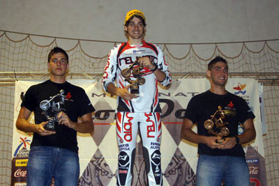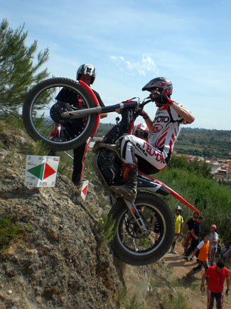 Manu Reyes, que la pasada edición atrajo con su pilotaje espectacular la atracción del público, no pudo repetir el magnífico resultado del año pasado. La clasificación general esta encabezada por Palomares, Jesús Martín y Nacho Martín. TR2, tercera para Oliver En esta ocasión cinco pilotos pelearían por la victoria en este prestigioso trial. David Oliver consigue su tercera victoria consecutiva y se consolida como líder de la general. Oliver no fue el mejor en el primer giro, pero logró reducir casi a la mitad su puntuación de la segunda vuelta y acabar con 34 puntos. Segundo fue Borja Sánchez, que debutaba en el campeonato, pues ha estado toda la temporada con una lesión en su muñeca. Al contrario que Oliver, Borja realizaba las primeras pasadas por las zonas de un modo muy seguro, logrando la mejor puntuación de este primer giro, pero los malos resultados de las segundas pasadas le privaron de la que hubiera sido una victoria segura. Tercero fue el piloto de Requena David Sánchez, quien a veces ejercía de mochilero de su padre, que competía en TR5+35. La cuarta plaza fue para Cesar Dús, que con su pequeña 125cc afrontaba pasos y subidas de auténtica dificultad. Sin duda esta temporada traerá buenos frutos para este valiente piloto. Oliver, Sánchez y Dus forman las primeras plazas de la clasificacion general de esta categoría.