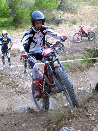 Segundo fue Borja Sánchez, cerrando la clasificación César Dus, que sigue enfrentándose a las difíciles zonas rojas con mucho valor. Junior Según reflejan las puntuaciones de la clasificación de la prueba, las trazadas azules fueron las más complcadas de este trial. Nueva victoria para Juan Barquino, que se aferra a la primera posición de la general, seguido por los otros dos participantes de esta categoría, Pau Navarro y Manel Iranzo. Juvenil Baptiste Llorens, que lidera el campeonato, corría en casa y los nervios le jugaron una mala pasada. Baptiste falló más de la cuenta y esta circunstancia fue aprovechada por sus rivales para recortar distancia al bravo piloto de La Nucía. El vencedor de la prueba fue José Fletes, que registró una magnífica segunda vuelta en la que se dejó un solo pie, segundo fue Carlos Brines y tercero Bati Llorens. TR3 El piloto local Leo Baimbridge se anotaba otra victoria más y logra así la quinta del año. Segundo fue el piloto de Forcall, Raul Monfort y tercero Rafa Espejo.