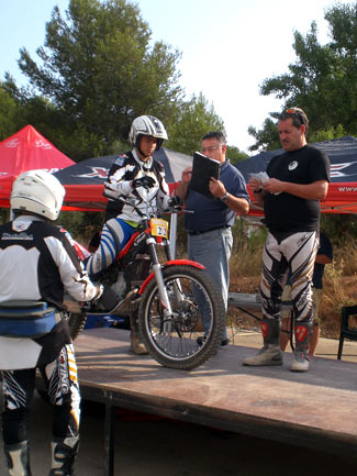 TR4 Miriam Duró, que aunque no sigue el campeonato no deja de montar en su Sherco cada vez que puede, demostró que lejos de olvidarse de pilotar cada día va mejor. Consiguió la primera posición en este trial, aunque no puntúa en el campeonato. Alex Martínez fue segundo, aunque se lleva los 25 puntos de la primera posicion. En La Nucía volvimos a encontrarnos a Juan Pablo Penades enfundado en su mono de faena. Penades fue tercero. Cuarto y quinto los pilotos de La Vila, Llinares y Kiko Sánchez. TR5 El joven Victor Agulló estrenaba montura y con su nueva Beta consiguió la puntuación más baja de todos los amarillos. Tras él se colocó Luis Beniel. TR5+35 Antonio Pavia le ha tomado el pulso a esta categoría y repite victoria. Vicente Oliver fue segundo a un solo punto y algo más atrás estaba Pepin Agullo, que continua liderando la general. Mala suerte para el piloto de La Nucía José Hervás, que termino en la novena posición.