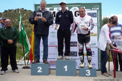 El cordobés Joaquín Salcedo, con 44 puntos completó los puestos de honor. En TR2, el local David Fernández (Sherco) no falló en su casa y como Sergio en TR1, también ganó por la mínima, al cerrar su participación con 16 puntos por los 17 del granadino Alejandro Alzueta. Por la tercera plaza del podio también hubo una intensa pelea entre el sevillano Víctor Puig y David Lechuga que, en este orden, también terminaron separados por un punto. En TR3 siguió manteniendo esa gran igualdad. Del primero al sexto sólo hubo 5 puntos de diferencia. La primera plaza se decidió en el recuento de ceros, saliendo airoso el cordobés Diego Molina que sacó un cero más que el malagueño Juan Luis Aranda, con el que empató a 22 puntos y al que un fiasco en la última zona le relegó al segundo puesto. Becerra era tercero con 24, un punto menos que el cordobés Ángel Perea.