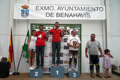 En los Clásicos Expertos, doblete de los hermanos sevillanos Antonio y Miguel Bohórquez, que terminaron sus 21 zonas con 15 y 23 puntos respectivamente. La ausencia del dominador de la categoría los últimos años, Gutiérrez-Ravé, les puso las cosas más fáciles a la pareja hispalense, que tuvieron al jiennense Manuel Rull como el otro integrante del podio al sumar 36 puntos. Antonio Bohórquez es el que estará de líder por lo menos hasta septiembre, ya que suma 116 puntos, seguido de los 98 de Rull y los 97 de Gutiérrez-Rave. En Clásicas, segunda victoria consecutiva del sevillano José Antonio de la Fuente, que fue de menos a más para terminar con 20 puntos, sólo uno menos que el segundo clasificado, el gaditano José Manuel Moreno. El también hispalense Marcos Jiménez, completó el podio con 24 puntos. Moreno sigue al frente de la provisional con 111 puntos, seguido del cordobés Giraldez con 105, que en esta prueba se quedó a las puertas del podio al ser cuarto con 32 puntos. En los Aficionados, doble alegría para el cordobés de Jotagás, José Manuel Alcalá, ya que además de lograr una victoria por la mínima, 9 puntos por los 10 de José Manuel Cabrera, también se va de vacaciones con el liderato bajo el brazo, y también por la mínima diferencia al totalizar en estas cinco primeras carreras 106 puntos, por los 105 del cordobés Antonio Roldán, que en el día de hoy completó los puestos de honor con 16 puntos. Primer triunfo de Álvaro López Macías, que ha roto la hegemonía de su hermano Fernando, primero en las cuatro anteriores carreras y que hoy se tuvo que conformar con cerrar el cajón al terminar empatado a 10 puntos con el jienense Sergio López. Álvaro hizo un trial casi perfecto al cometer sólo un error en toda la jornada. Los dos hermanos se reparten las dos primeras plazas de la provisional con 120 para Fernando y 109 para Álvaro.