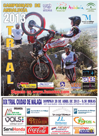 El Campeonato de Andalucía de Trial vuelve este domingo día 28 a la actividad en la localidad malagueña de Puerto de la Torre, con la celebracion del XIX TRIAL CIUDAD DE MALAGA, escenario de la tercera cita del Campeonato 2013, que será puntuable para todas las categorías.
