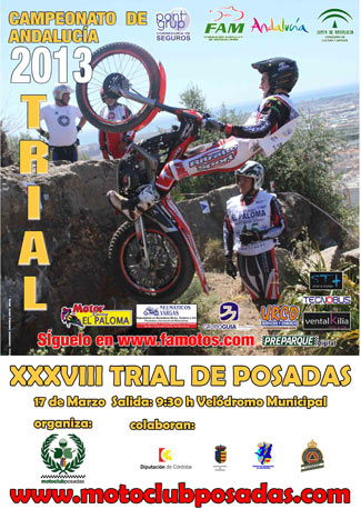 Sera la trigésimo octava edición de la prueba malena, sin duda la de más solera del calendario andaluz, la que en esta ocasión ponga en marcha una nueva edición del certamen andaluz que este año tiene algunas novedades interesantes. La prueba organizada por el Motoclub Posadas, tendrá en el Velódromo Municipal el centro de operaciones, donde estará situado el paddock y la salida y llegada de la prueba. La actividad comenzara a las 8,30 con las verificaciones administrativas y técnicas, y el primer piloto tomará la salida a las 9,30. El recorrido constará de siete zonas a tres vueltas y unos 4 km por vuelta de interzona. Están convocadas todas las categorías del campeonato: TR1, Junior, TR2, TR3, TR4, Aficionados, Clásicos, Clásicas Expertos, cadete e infantil. Las inscripciones deberán de formalizarse en la web de la FAM www.famotos.com, hasta el miércoles previo a la prueba a las 12 de la noche. NOVEDADES Por un lado la más significativa y teniendo en cuenta los tiempos que corremos, es la bajada considerable del precio de la licencia (exclusiva de trial) que será de 160 Euros.