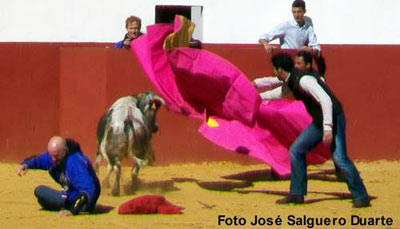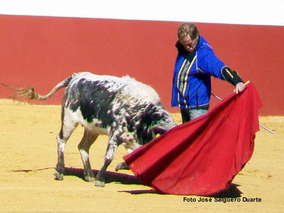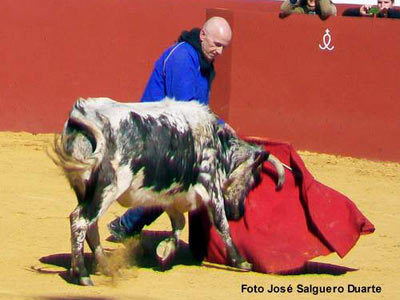 El evento que tuvo lugar en la ganadería del Maestro Ruiz Miguel, en la localidad de los Barrios, provincia de Cádiz, contó además con la presencia de Arnau, director Comercial de la marca, Isidoro Rodríguez "El Paloma", concesionario oficial en Andalucía, y David Chávez, delegado de la firma. Paxau nos comentaba "Yo soy un gran amante de la naturaleza y de los animales porque me he criado cerca de ellos". La pasada temporada debutó ante una vaca brava, y este año ha querido repetir suerte. El animal le embistió antes de que pudiera armar su muleta y Paxau voló por los aires (en esta ocasión sin avioneta). Afortunadamente el percance no tuvo consecuencias y volvió a la cara del animal para dibujar varios pases de pecho de excelente factura y salir triunfador de la plaza. "Esta es una sensación muy especial, el animal bravo es precioso".
