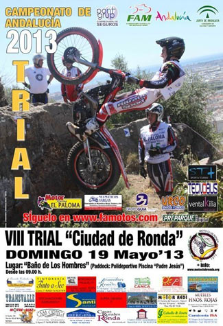 El Moto Club Ronda, que ha demostrado su buen hacer en años anteriores, será el organizador de este trial. La prueba cambiará ese año de ubicación, siendo las Instalaciones del Complejo Deportivo "Padre Jesús" (C/ Guadalcobacín s/n) donde estará situado el parque cerrado y la salida. Os adjuntamos plano explicativo de la nueva ubicación al final de este previo. GPS: