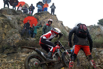 Esos jóvenes pilotos también sufrieron las inclemencias del tiempo al estar las zonas muy mojadas por la incesante lluvia y ser las zonas de resbaladizas piedras. Los alevines pasaron dos veces en cada sentido 3 zonas que se habían marcado para ellos. Otra vez no podemos más que agradecer a todos los que hicieron que este trial se llevase a cabo, a todos los miembros del moto club Candeleda-Gredos, al personal de Protección Civil que estuvo ayudando en la carrera, al personal de la Cruz Roja, Guardia Civil, patrocinadores y a los que de alguna manera contribuyeron en la realización de esta carrera, muchas gracias por vuestro trabajo. Mención especial de agradecimiento para el Ayuntamiento de Candeleda, dando ubicación física a este trial y gestionando los permisos administrativos adecuados y para los sufridos, helados y remojados jueces y adjuntos que aguantaron estoicamente la mañana lluviosa que les tocó aguantar.
