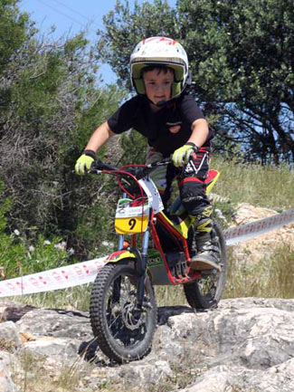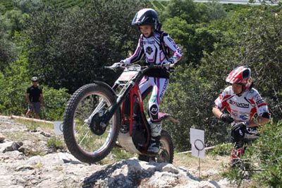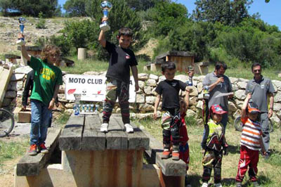 El Área recreativa de la Torre de la Carrova se ha vuelto a vestir de gala para acoger la treintena de pilotos participantes en la tercera prueba de la Copa catalana de trial de niños, el 10 º Trial de nens del Montsià, organizado por el Moto Club Amposta. Victorias de Adrià Mercadé en Iniciación; Frederic Guardiola, en Eléctricas; Carlos Palma, en Alevín; Pablo Martínez, en Base 80; Neus Murcia, en Promo 80 y fuera de concurso, Mireia Lozano, ha sido el resultado final de una prueba que ha tenido a todos estos pilotos compitiendo durante toda la mañana por los alrededores de la Torre de la Carrova y que ha contado con la participación de pilotos de la comunidad valenciana. Neus Murcia, ha sido la ganadora indiscutible a la categoría máxima de la prueba de este domingo, la Promo 80, categoría que es el último año que disputa Neus, ya que para el próximo cambia y se pasa ya al trial los pilotos mayores. Una caída en la tercera pasada por la zona 5, no le ha impedido obtener el triunfo por delante de Arnau Carreras.