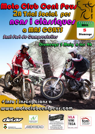 El próximo domingo 5 de mayo a las 9:00 el Moto Club Cent Peus organiza su segundo trial social para niños y clásicas del año en Mas Corts, Sant Fost de Campscentelles (Barcelona). Más información e inscripciones en la web del club: www.motoclubcentpeus.com.