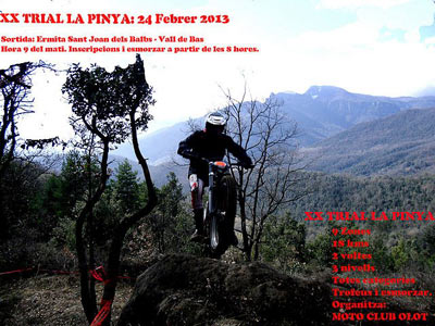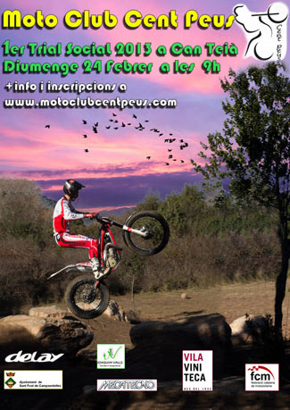 El próximo domingo 24 de febrero el Moto Club Cent Peus organizará su primer trial social de la temporada 2013. Será en Can Teià (Barcelona) a partir de las 9h. Más información e inscripciones en la web del Motoclub: www.motoclubcentpeus.com.