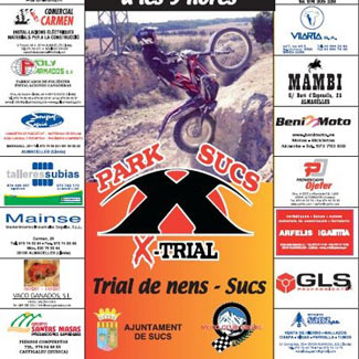 Esta nueva área para la práctica del trial ha nacido gracias a los esfuerzos de Luis Monfort con la colaboración del Ayuntamiento de Sucs, que ha cedido el terreno. Poco a poco se están aportando materiales para hacer zonas artificiales y se están marcando zonas naturales. Con el apoyo de algunos patrocinadores se ha conseguido pagar el transporte de materiales y el alquiler de la maquinaria necesario. Dispone de picnic y baño. Además se cuenta con la colaboración de Marcel Justribó, que puede dar clases de grupo o particulares en el área. El acceso es gratuíto para todos los que quieran ir a entrenar en el área, tan sólo se pide respeto y no ensuciar, dejando todo tal y como estaba. En cuanto a la tercera prueba del Campeonato de Cataluña de niños del día 28 de abril, todos los pilotos y acompañantes estarán invitados a un desayuno gentileza de Park Sucs, y quien quiera puede apuntarse a una comida en un restaurante vecino con un menu muy económico. La organización, en la que también colaborará Marcel Justribó, intentará hacer zonas únicas para las motos eléctricas y el objetivo será que todos puedan disfrutar y pasarlo en grande. Habrá 5 categorías entre motos eléctricas y 80 c.c y una categoría más abierta en la que podrán participar todos aquellos que dispongan de licencia. Para las mamás y acompañantes será un trial ideal ya que todas las zonas estarán muy cerca y podrán disfrutar de la zona de Picnic en la sombra de los pinos.